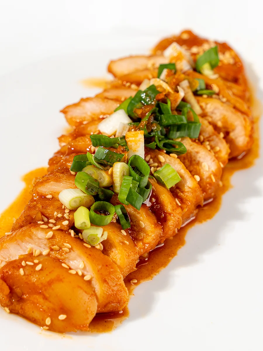 抽真空後 55–65 °C 慢煮,鎖住水分與膠原;雞胸、牛排皆可一次煮 5 份,口感軟嫩不失敗。
